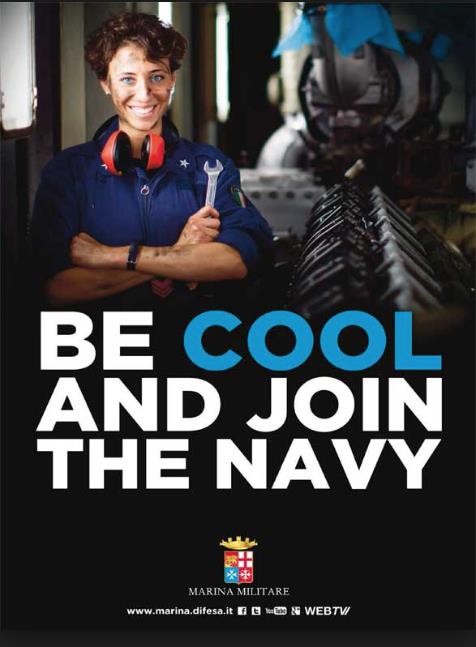 Moreover this advertising has a presumptuous statement. It isn’t very kind to congratulate yourself. For sure this is not in the tradition of “Officers and Gentlemen”. It should be the role of us citizens to say: “Look at that Seaman! Wow he’s cool!”. On the contrary the Italian Navy awards itself as ‘Queen of Coolness”.